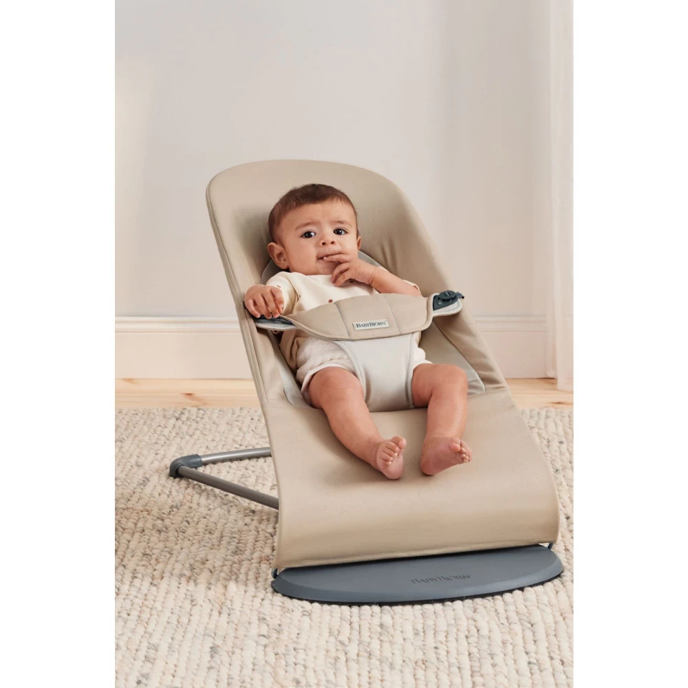 Le Transat bébé balance coton beige et kaki de chez Babybjorn. Fourni avec une housse en coton très douce, vous pourrez l’utiliser dès la naissance de votre enfant jusqu’à ses 2 ans environ. Évolutif, vous pouvez l’utiliser en transat jusqu’à 9kg. Par la suite, il suffit de retourner la housse pour le transformer en fauteuil confortable jusqu’à 13 kg. Facile à déplacer et à transporter, vous pouvez vous équiper d’un sac de transport (vendu séparément). Votre enfant sera apaisé par le balancement naturel de ce transat bébé. Il est déhoussable ce qui vous permettra de facilement nettoyer la housse ou de la changer pour une autre matière comme le Jersey 3D ou le Mesh. Ce transat garantit un soutien optimal du dos, de la nuque et de la tête de votre bébé.