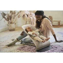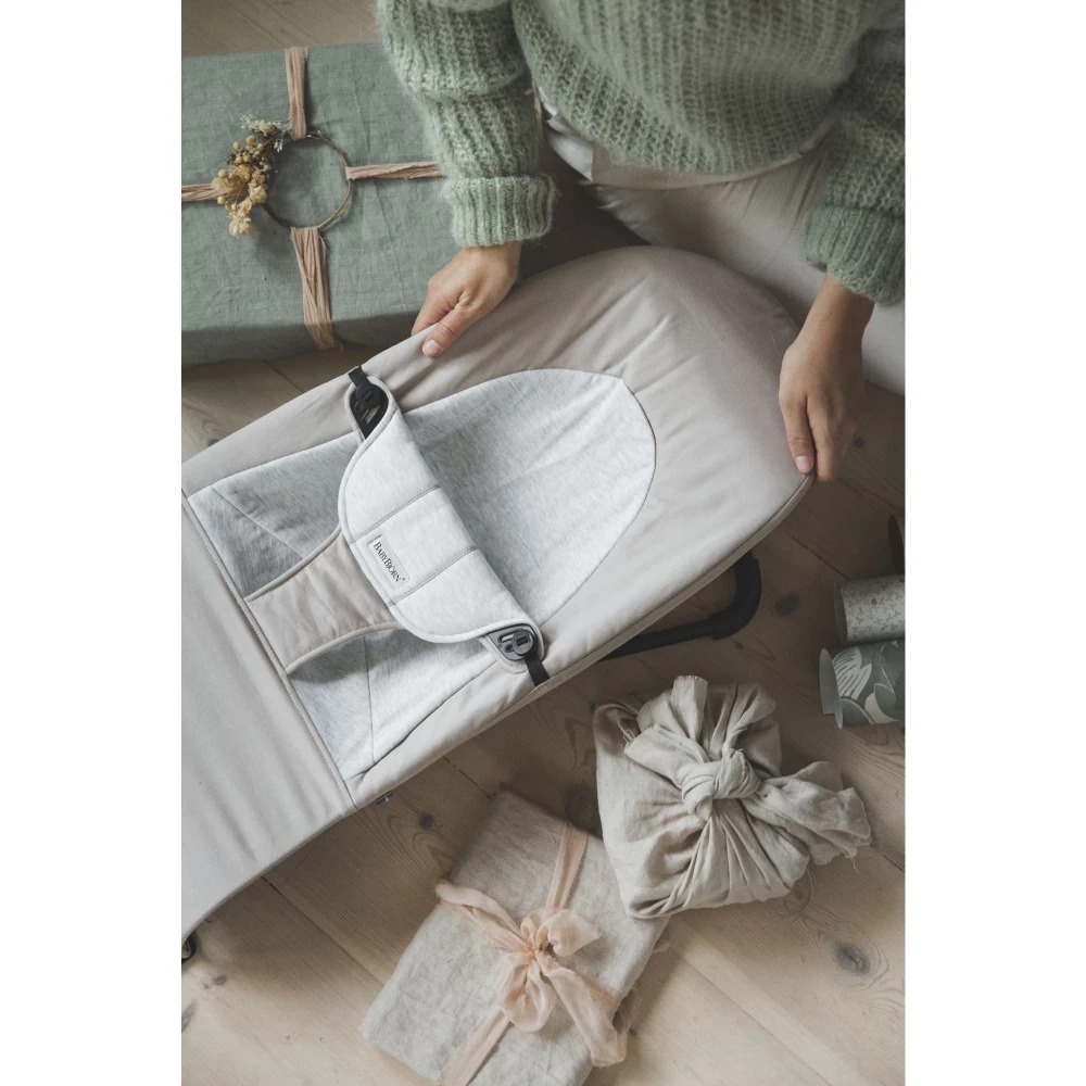 Le Transat bébé balance soft coton et jersey beige et gris cadre noir de chez Babybjorn. Fourni avec une housse en coton très douce, vous pourrez l’utiliser dès la naissance de votre enfant jusqu’à ses 2 ans environ. Évolutif, vous pouvez l’utiliser en transat jusqu’à 9kg. Par la suite, il suffit de retourner la housse pour le transformer en fauteuil confortable jusqu’à 13 kg. Facile à déplacer et à transporter, vous pouvez vous équiper d’un sac de transport (vendu séparément). Votre enfant sera apaisé par le balancement naturel de ce transat bébé. Il est déhoussable ce qui vous permettra de facilement nettoyer la housse ou de la changer pour une autre matière comme le Jersey 3D ou le Mesh. Ce transat garantit un soutien optimal du dos, de la nuque et de la tête de votre bébé.