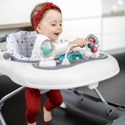 Le trotteur 2 en 1 a l’avantage d’allier 2 fonctions, trotteur (jusqu’à 12 Kg) et pousseur (jusqu’à 24 mois) pour accompagner bébé vers de plus en plus d’autonomie dans la marche. C’est un allié pour le développement psychomoteur de bébé !