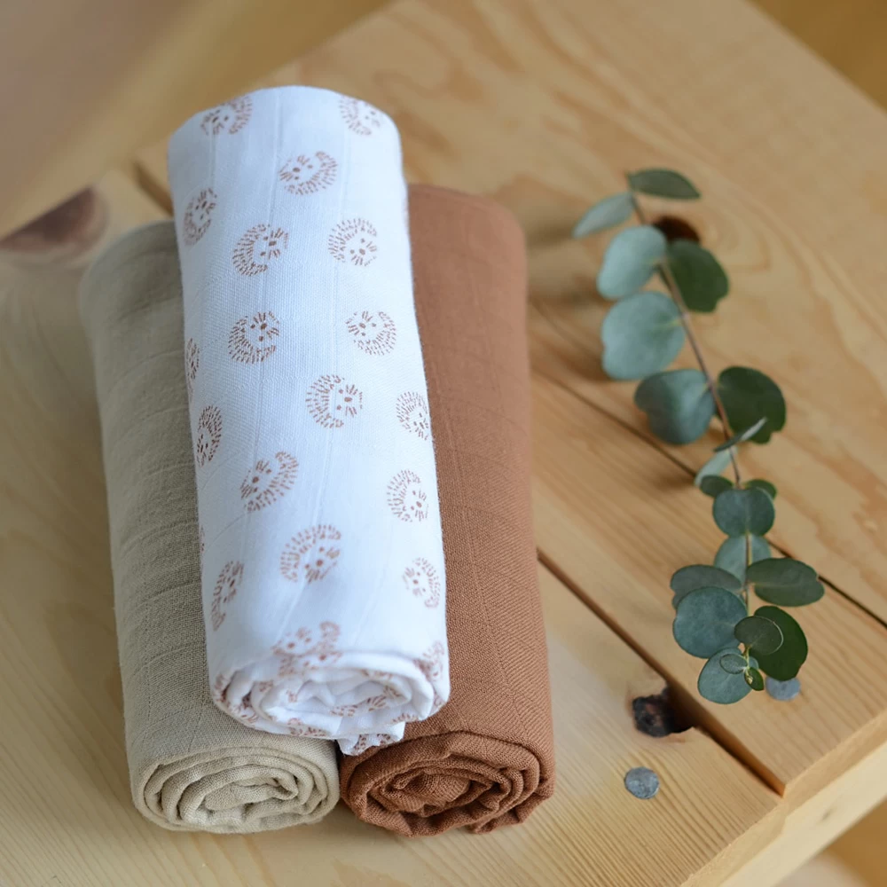 Lot de 3 langes 70 x 70 cm hérisson
