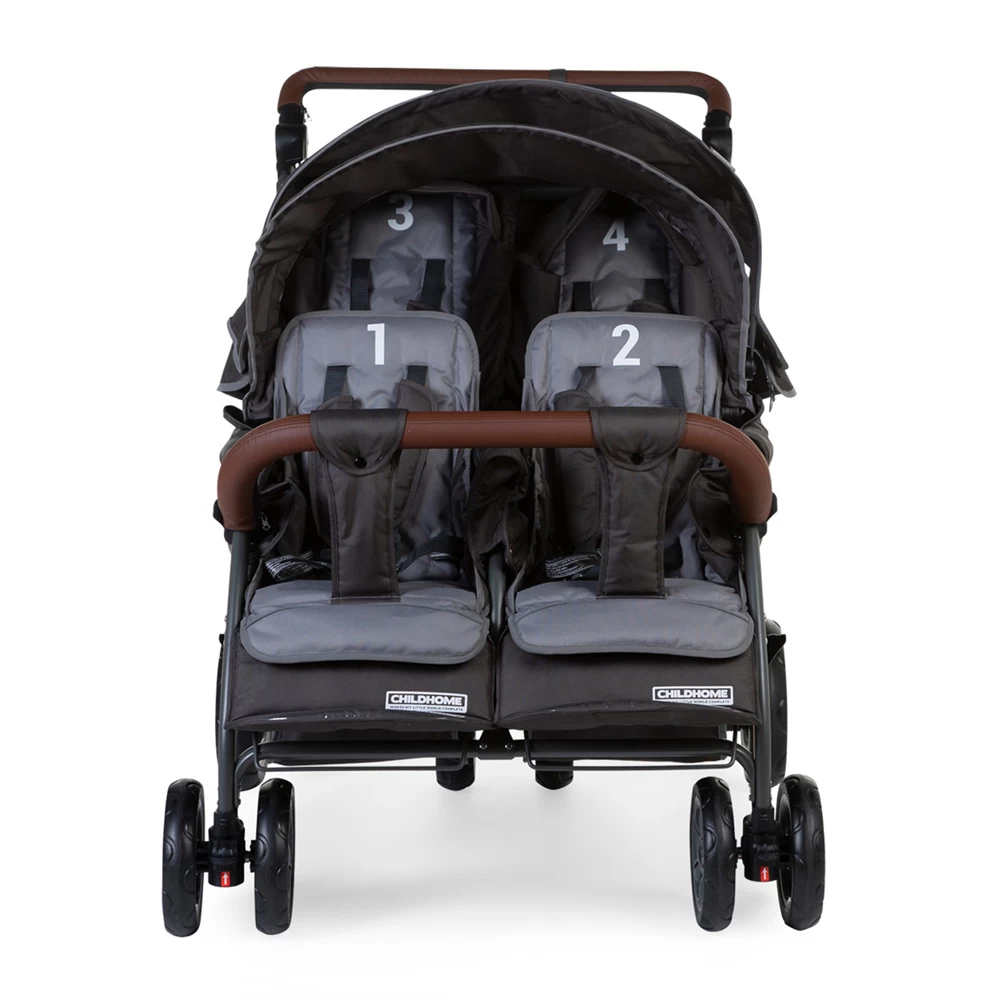 La Poussette multiple quadruple childhome est 100% design, très simple à utiliser, cette poussette quadruple vous suivra partout, en assurant une promenade agréable pour vos bébés.