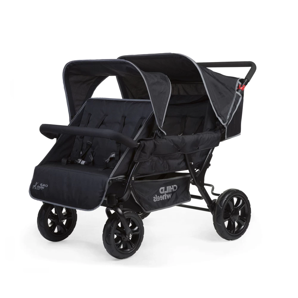 Découvrez la Poussette two by two noire de la marque Childhome. Elle a été conçue pour répondre aux attentes des familles nombreuses ou des assistantes maternelles. Cette poussette permet d’accueillir jusqu’à 4 bébés (dès 6 mois et jusqu’à 15 kg). Elle est dotée d’une excellente maniabilité malgré son encombrement. Cette poussette est équipée d’un système de freinage, de roues pivotantes à l’avant et de 2 roues fixes à l’arrière. Elle possède un grand espace de rangement. Toutes les assises disposent d’un harnais de sécurité 5 points pour une sécurité optimale.