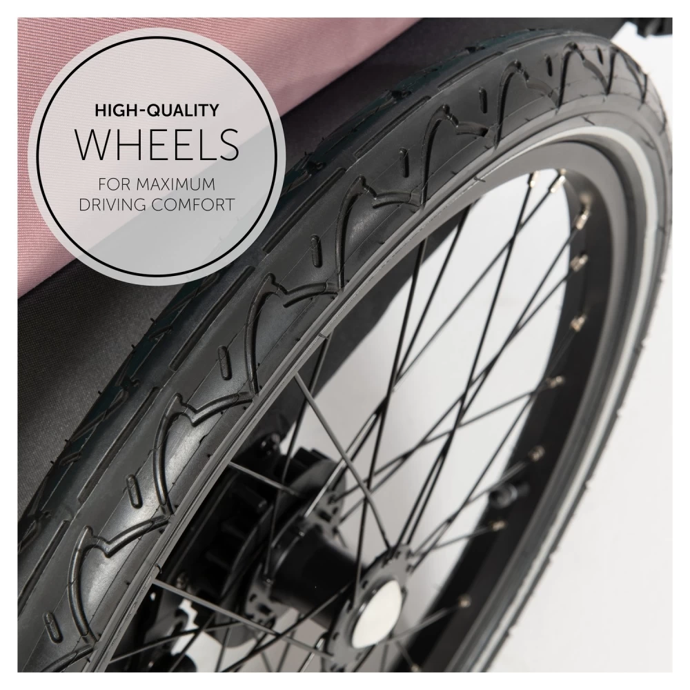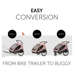 Le chariot Dryk Duo Rose de la marque Hauck. Utilisable pour les enfants de 6 mois à 4 ans. C’est la remorque idéale pour les promenades avec 1 ou 2 enfants. Vous pourrez le fixe à votre vélo pour vous déplacer en famille ou encore transformer le chariot en poussette. Le chariot Dryk Duo est la poussette multifonctionnelle à avoir ! Sur la route, vous ne sentirez pas les tremblements grâce au siège rembourré qui apporte un maximum de confort sans compter l’habitacle à température contrôlée…mais aussi la moustiquaire lors de vos balades en été le long de la mer ou le long d’un lac ! Arrivée à destination, pourquoi ne pas se faire un petit pique-nique que vous aviez préparé et soigneusement rangé dans le coffre de contenance 6 kg maximum. Puis ne vous inquiétez pas, le chariot possède un feu arrière afin d’être visible. Un conseil, vous pourrez nettoyer me chariot avec de l’eau uniquement et quelques produits d’entretiens ménagers. Surtout n’utilisez pas de produit corrosif.