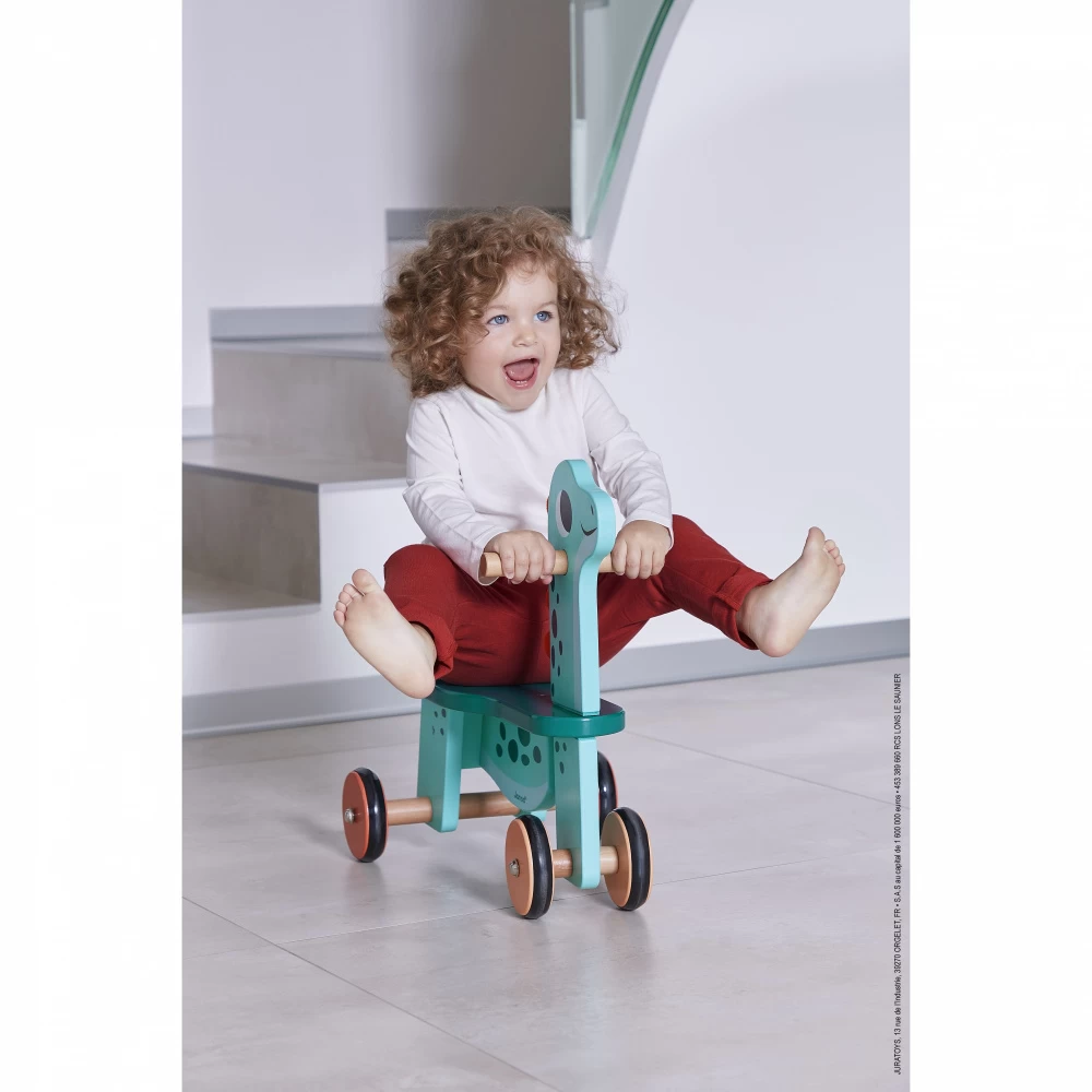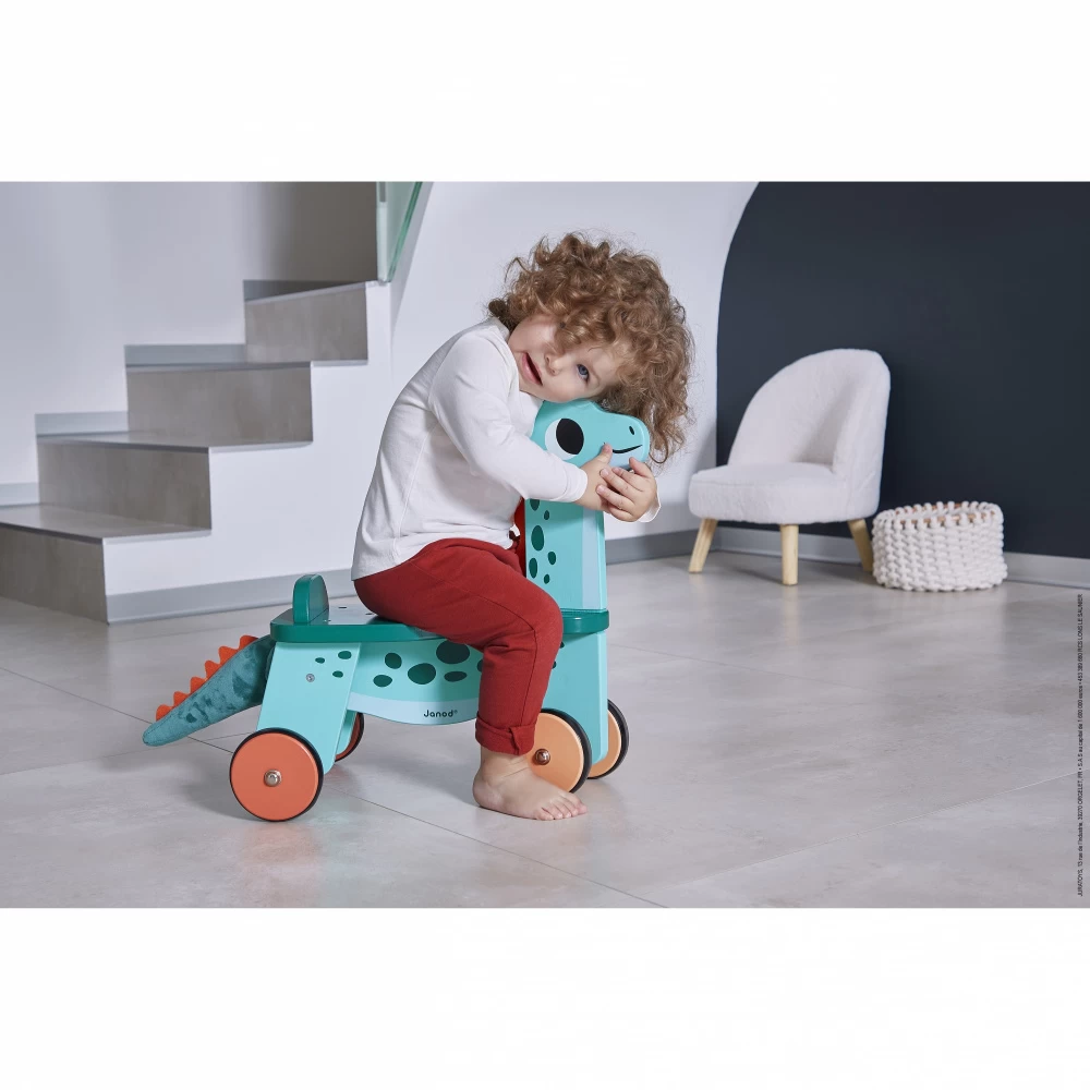 Choisissez ce Porteur bébé dino portosaurus de chez Janod. Utilisable dès 12 mois. Idéal pour accompagner bébé durant son apprentissage de l’équilibre et de ses appuis.