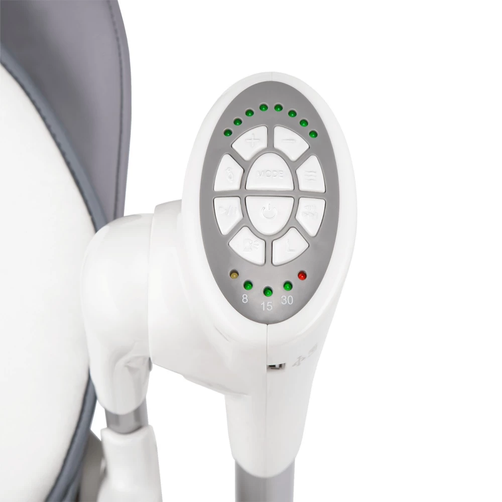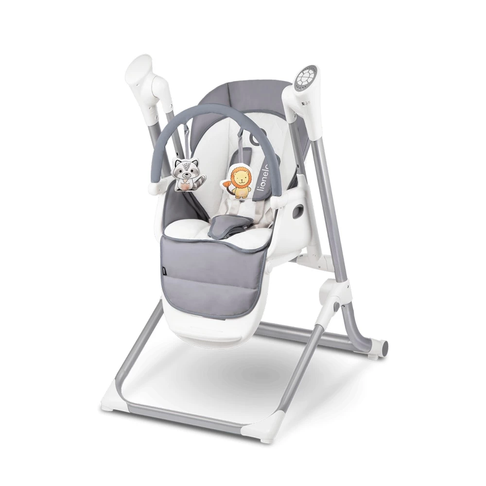 Craquez pour le Transat balancelle niles grey de la marque Lionelo. Ce transat interactif a été conçu pour divertir votre bébé. Il possède de nombreuses fonctionnalités qui feront le bonheur de votre tout-petit. Il est doté d’un mobile d’éveil. Idéal pour développer les sens et la motricité fine de votre enfant. Il est même possible d’y intégrer vos propres musiques via un lecteur USB. Le transat possède une fonction de bercement automatique réglable (durée de 8, 15 ou 30 minutes) qu’il est possible d’actionner à distance via une application (Anroid,IOS). Il est également possible de régler l’inclinaison du dossier et la hauteur de l’assise. Cette balancelle se transforme en chaise multifonction. Cet accessoire polyvalent facilitera votre quotidien.