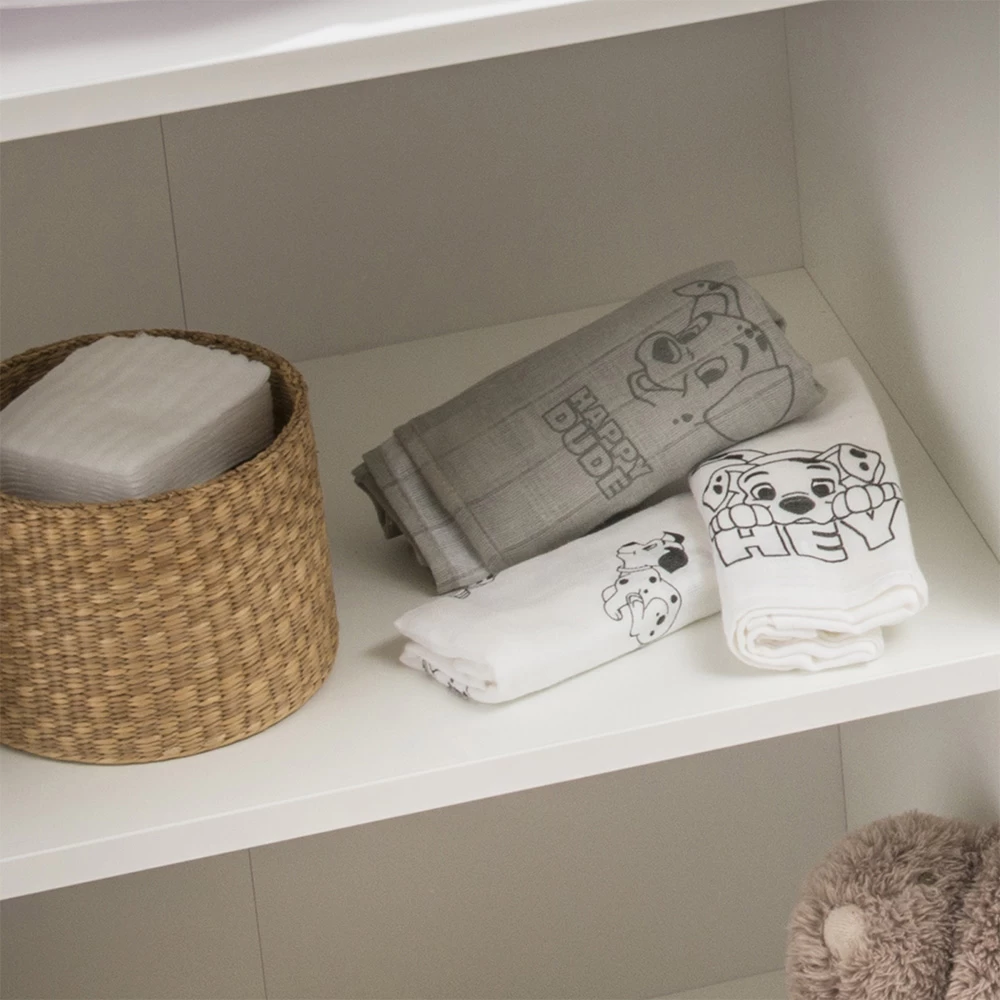 La marque Babycalin vous propose un Lot de 3 langes en coton 60 x 60 cm 101 dalmatiens utilisable dès la naissance.