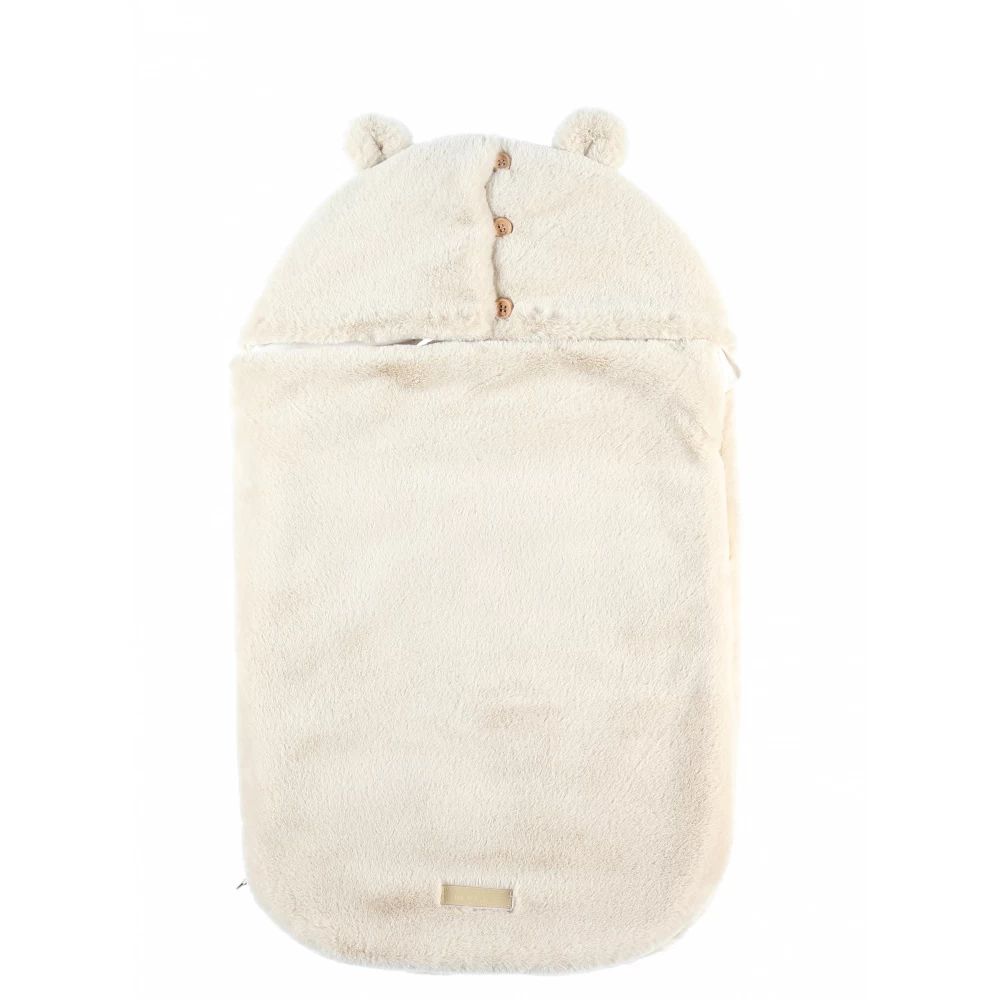 Le nid d’ange en long poil écru est idéal pour la sortie de la maternité, bébé s’y sent comme dans le ventre de sa maman.