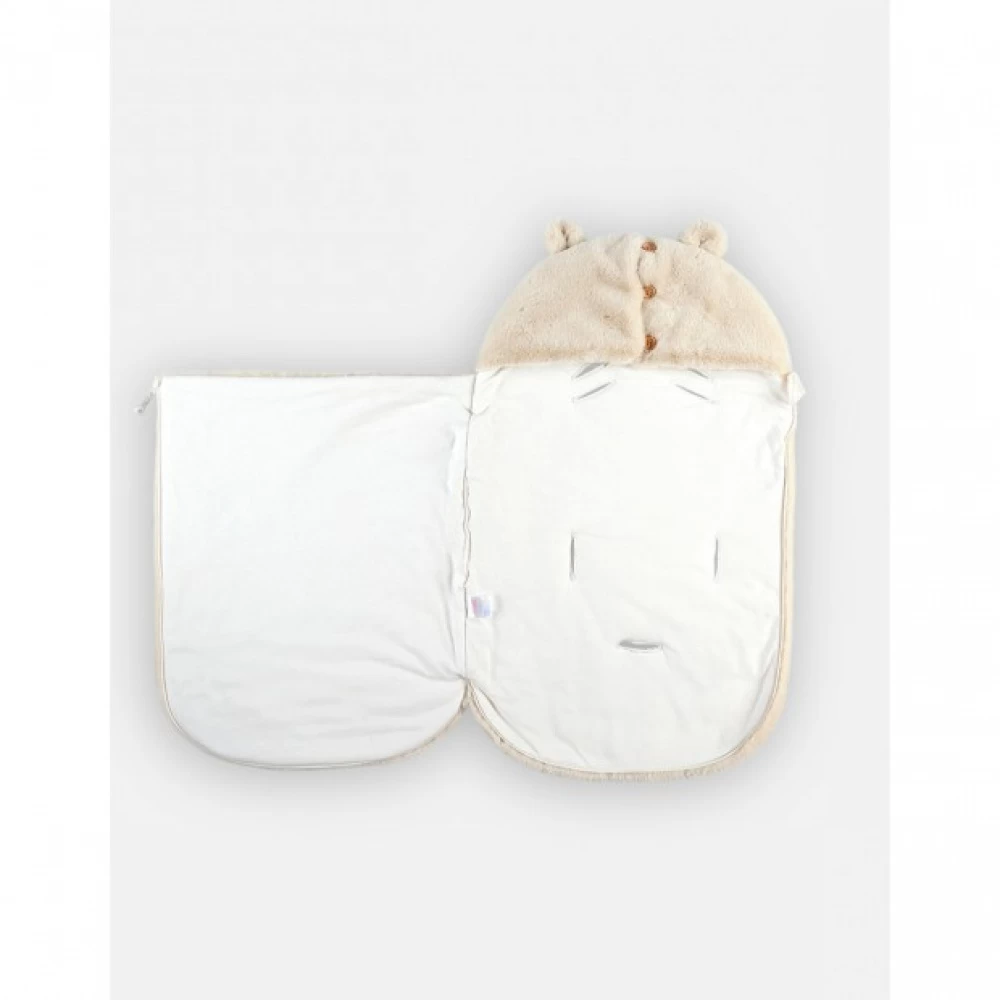 Il convient pour la mi-saison et l’hiver. Totalement pensé pour les plus petits, il s’ouvre grâce à une fermeture éclair sur le côté et convient aux sièges auto du groupe 0.