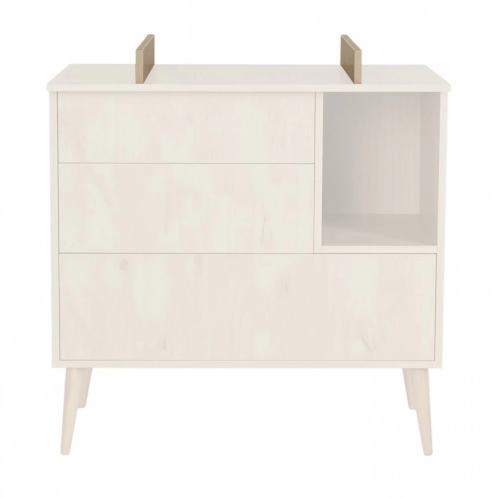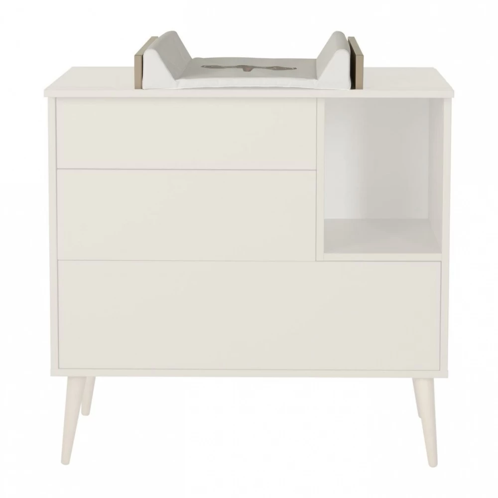 Le Plan à langer pour commode cocoon latte de chez Quax. Ce plan à langer est conçu pour s’adapter à la commode 3 tiroirs 1 niche (vendue séparément) de la même marque.