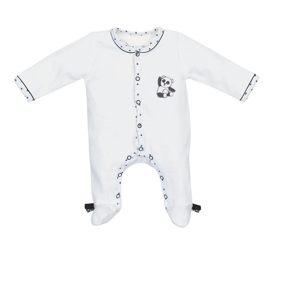 Pyjama bébé velours blanc panda chao chao naissance ouverture devant
