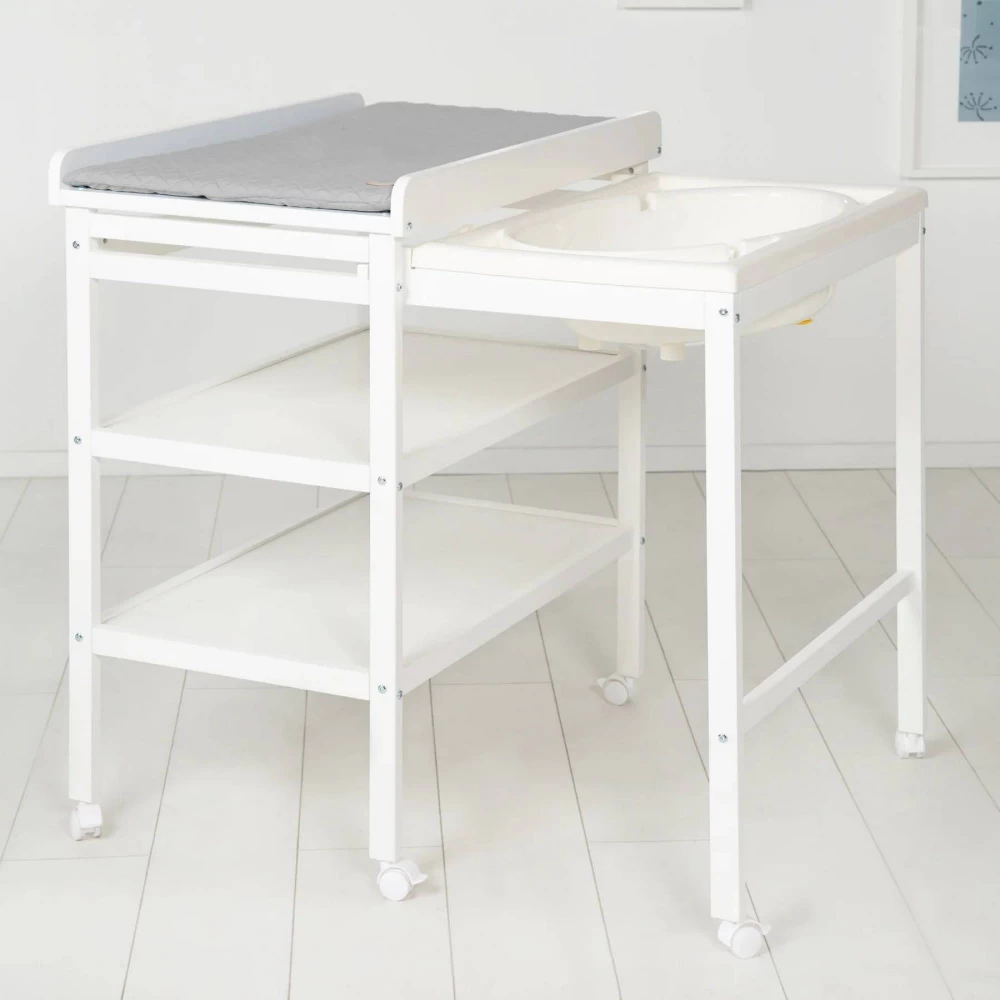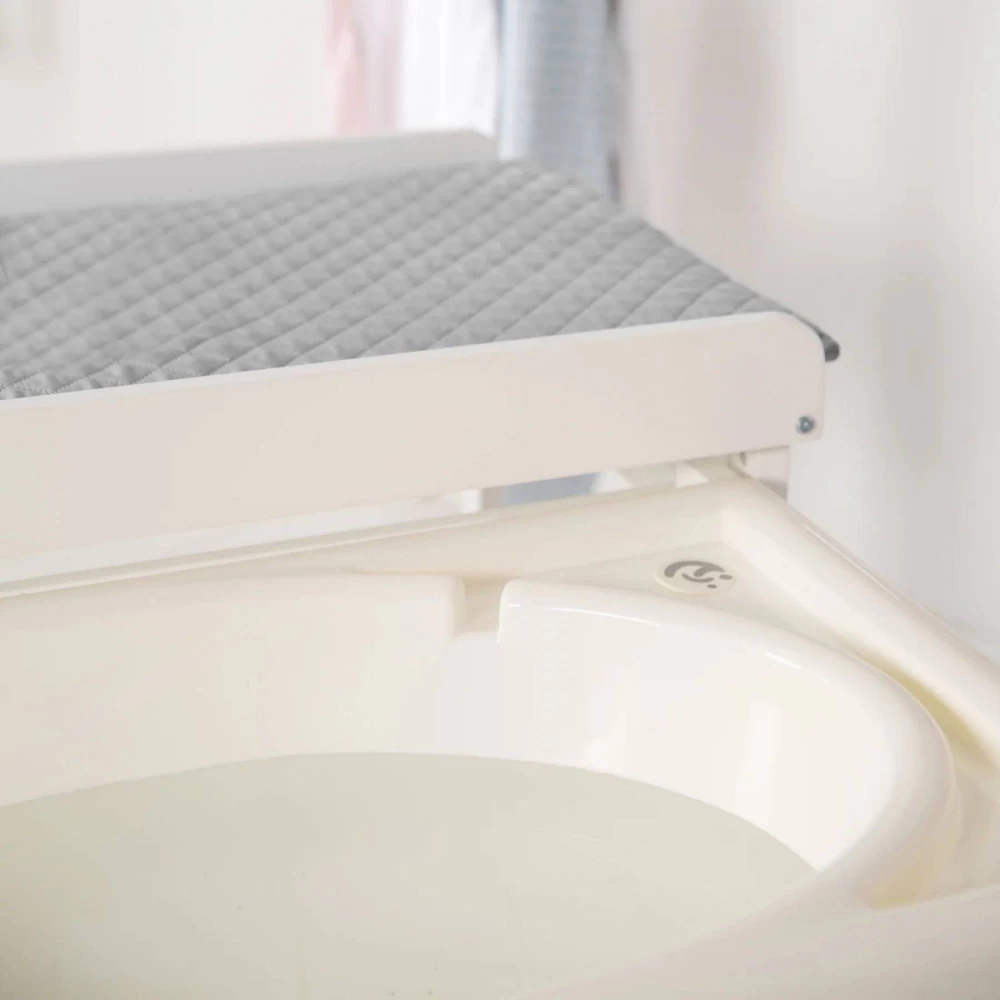 Les caractéristiques de cette Table à langer avec baignoire coulissante baby pool grise et son matelas à langer :