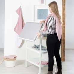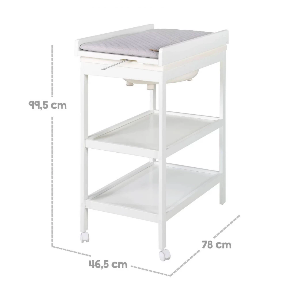 Cette Table à langer avec baignoire pliable baby pool gris et son matelas à langer va faciliter votre quotidien. Elle est composée d’une table à langer (matelas à langer inclus) doté de deux étagères de rangement et d’une baignoire. La baignoire bébé intégrée se range facilement sous le plan à langer après utilisation. Avec ses deux roulettes, optimiser le déplacement de votre table à langer au sein de votre habitation.