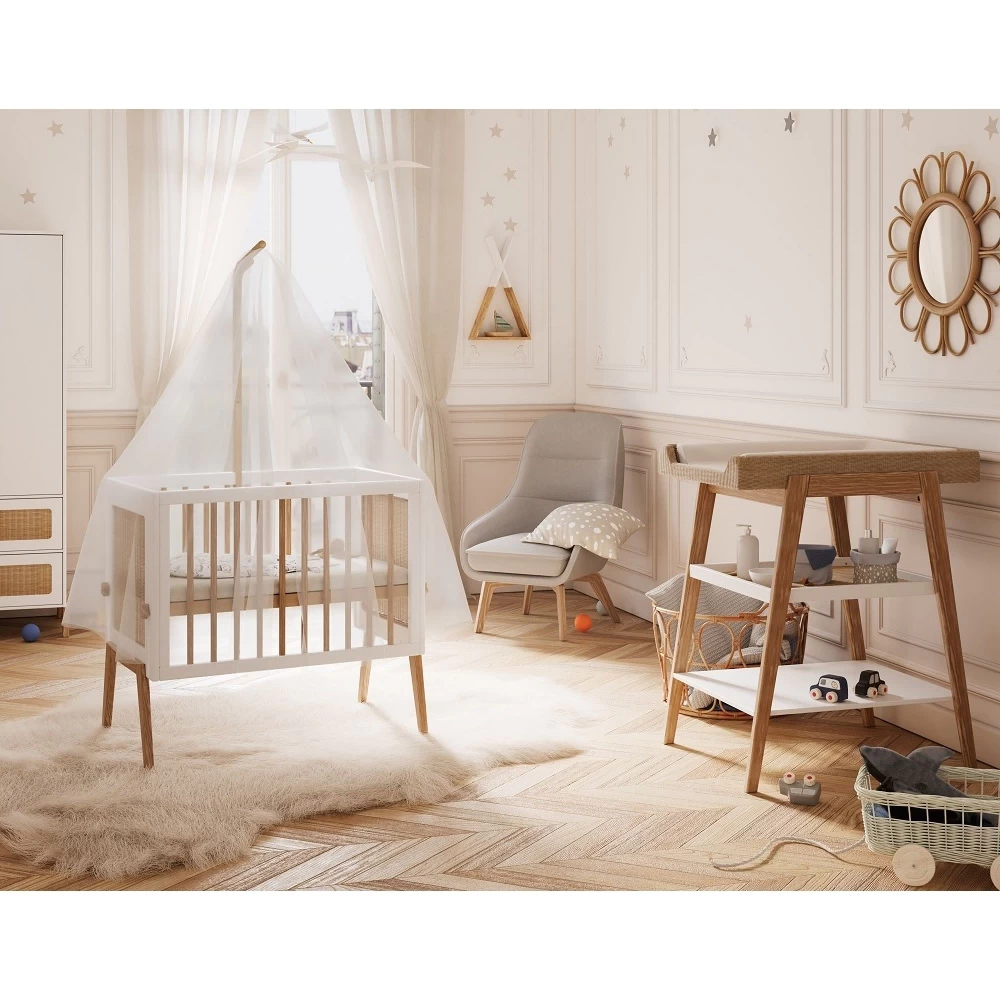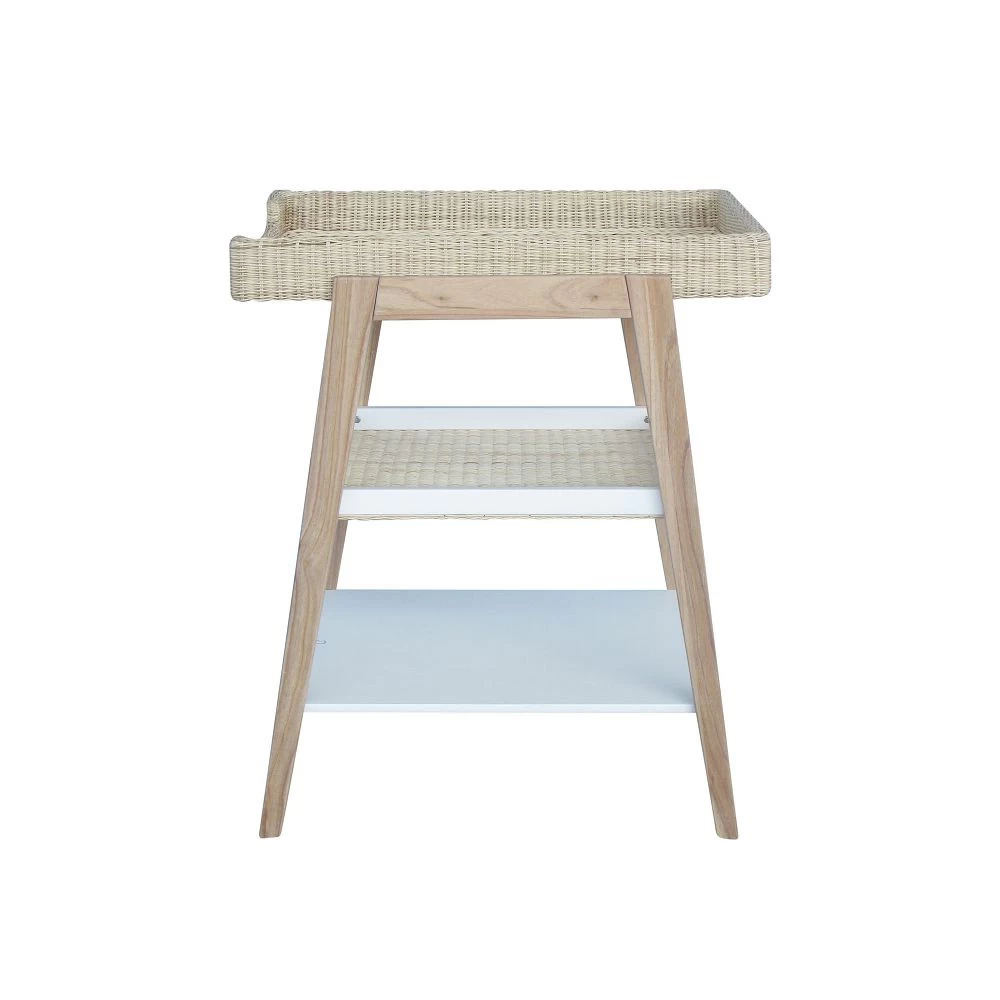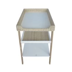 La table à langer Marélia Neige de la marque Théo. La marque Théo a fait le choix de privilégier le respect de la santé et de l’environnement : des finitions à base d’eau, sans odeur, sans solvants et sans émanation; des emballages sans plastique et dans le respect des normes françaises, européennes certifié par un laboratoire français indépendant. Assortie au reste de la chambre Marélia, cette jolie table à langer vous sera très pratique ! Dotée de 2 étagères, vous aurez tout à portée de main lors du change de bébé. Les montants sont en bois massif, les planches en MDF et le plan à langer entièrement tressé à la main par des artisans experts. Avec ses bords relevés, il maintiendra au centre votre bébé. Tout comme les autres produits Théo, elle vous assurera sécurité, solidité et durabilité.